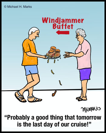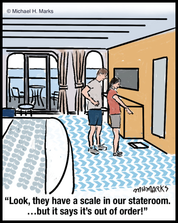One last cartoon from my cruise. I always forget to weigh myself before I go — and when I come back. But maybe the cruise line doesn’t really want me to.
